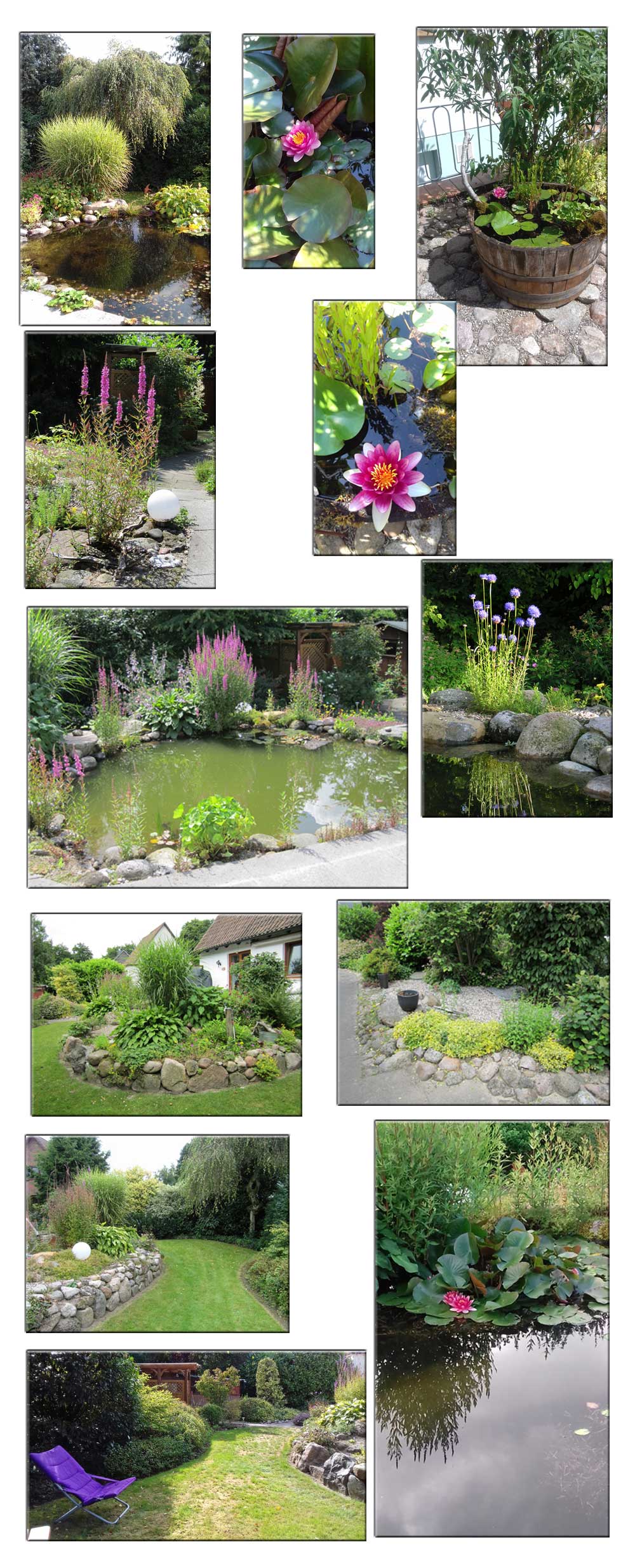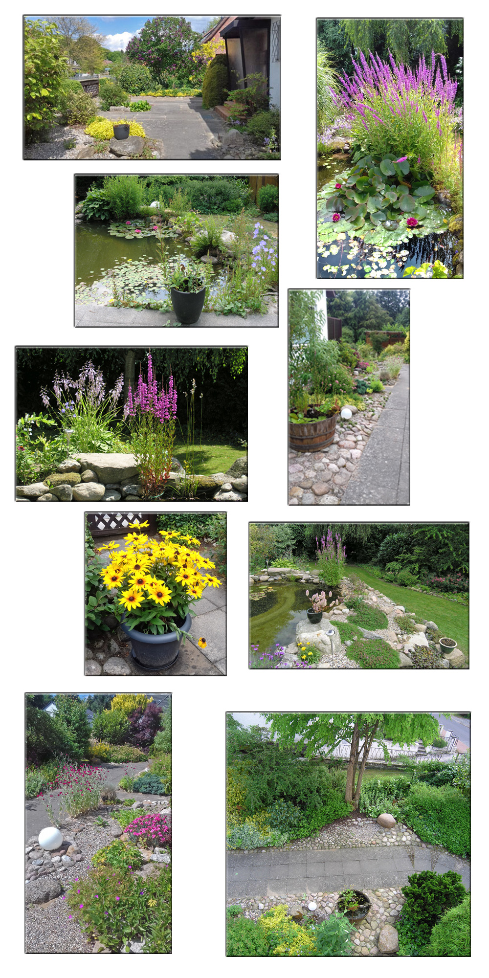 - Schau - Plätze mit Gehölzen, Stauden, Wasser und Steinen.