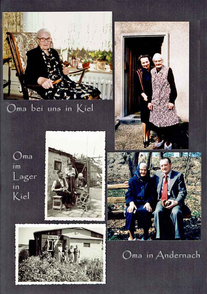 Mein Vater holte sie nach Kiel zurück und Oma war zufrieden dort. Schließlich hatte sie in der Umgebung lange Zeit gewohnt, und einige ihrer Bekannten lebten noch, und sie besuchte sie. Meine Oma wurde stolze 92 Jahre alt. Sie ist über Nacht zum 15. September 1980 ganz ruhig hinübergeschlafen.