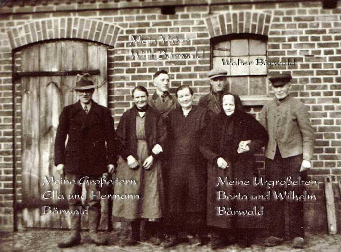 Drei Generationen Bärwald auf dem Hof in Schmalzenthin 1935/36.